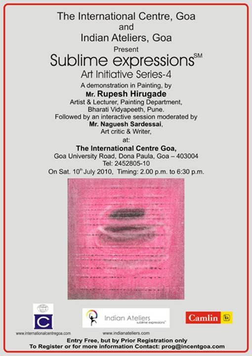A demonstration in Painting and an interactive session with Mr. Rupesh Hirugade, Faculty at the Fine Arts Department of Bharati Vidyapeeth, Pune on Saturday, 10th July 2010. This demonstration was held in association with the Indian Ateliers. Poster