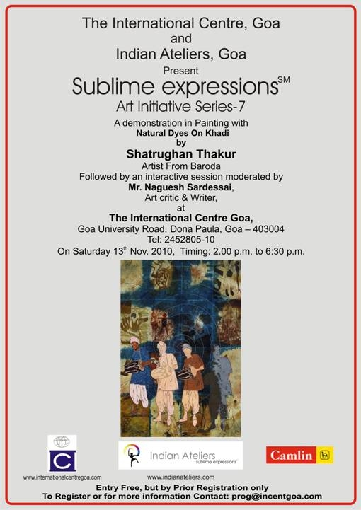 A demonstration in Painting with Natural Dyes on Khadi followed by an Interactive Session with Shri. Shatrughan Thakur – Artist from Baroda, Gujarat was held on 13 November 2010. Poster
